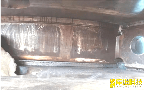 驅動箱零件組對拼點后,進行定位焊接,由于焊接機器人正式焊接時不能有效識別定位焊縫,若定位焊縫尺寸較大,焊接容易產生缺欠。因此,在正式焊接前需要對定位焊縫兩端10~15mm打進行磨處理,圓滑過渡,保證能夠與正式焊縫良好結合。定位焊縫要求焊透,不允許存在裂紋、未熔合、氣孔等缺欠。