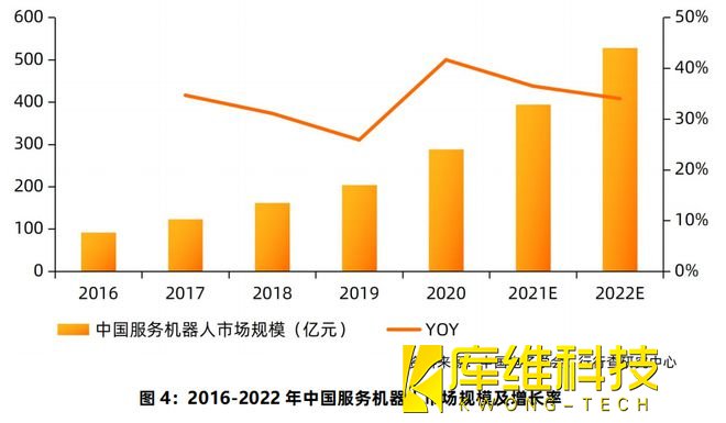 2021年我國(guó)服務(wù)機(jī)器人市場(chǎng)規(guī)模預(yù)計(jì)達(dá)到393.3億元,2016-2021年的年均復(fù)合增速達(dá)34%,市場(chǎng)規(guī)模總體增速高于工業(yè)機(jī)器人。近年來,服務(wù)型機(jī)器人產(chǎn)品的消費(fèi)需求不斷升級(jí)、消費(fèi)群體日益擴(kuò)大,C端市場(chǎng)應(yīng)用滲透率不斷提升,預(yù)計(jì)2022年我國(guó)服務(wù)機(jī)器人的市場(chǎng)規(guī)模將達(dá)到500-550億元。