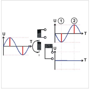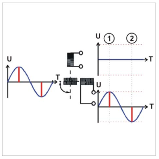 感應引起的電壓在兩個測量點 (1,2)接受探測和評估。