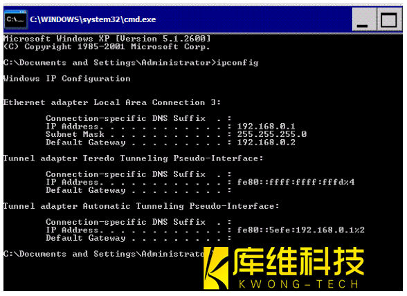 庫卡機器人KRC4控制系統指令:ipconfig如下圖;