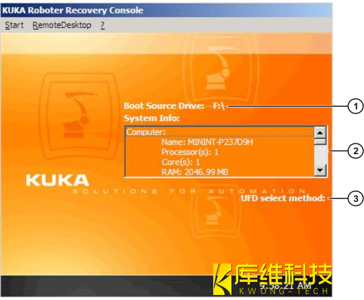注意:庫卡機器人用于 KR C 系統還原的操作界面在文件里被稱為 “ 修復控制臺 ”。