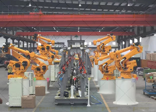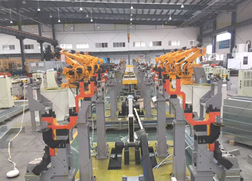 整線由彎板切割機器人工作站、中板坡口機器人工作站、座體機器人焊接工作站、中部槽機器人焊接工作站及中部槽總成機器人焊接線組成,包含整套機器人系統(tǒng)、機器人滑道、桁架梁、機器人焊接系統(tǒng)、兩軸變位機、彎板切割機、火焰割炬、激光跟蹤系統(tǒng)、焊接平臺、柔性組對工裝夾具、焊接電源、煙塵凈化系統(tǒng)等部分構(gòu)成