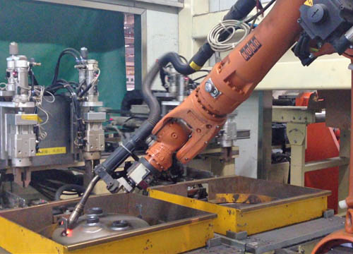 自動化焊接生產線,整條柔性自動化焊接生產線包含爐體總成檢測線、爐體總成焊接線、外壁成型線、內膽成型線四大部分。