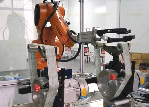 針對小型的五金件(如把手),利用機(jī)器人帶夾持工具對五金鑄件的毛刺飛邊的打磨和拋光而專門設(shè)計的產(chǎn)品。該單元主要由機(jī)器人及砂帶機(jī)和拋光機(jī)構(gòu)成 ,轉(zhuǎn)臺進(jìn)行變位協(xié)同及工件裝卸,全自動化完成產(chǎn)品的打磨拋光過程