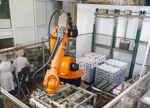 適用化工、建材、飼料、食品、飲料、啤酒、自動化物流等行業,配以不同抓手,可實現在不同行業各種形狀的成品進行裝箱和碼垛。
