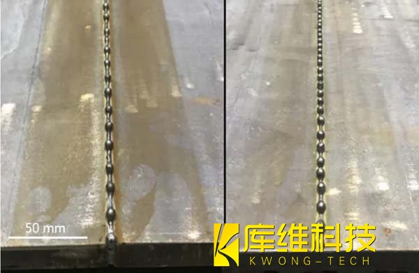 焊接樣品顯示出了優異的焊接質量,焊接底部沒有氣孔且無明顯駝峰,鋼板表面填充完美,這些都是良好底部形態的特征。這些結果得益于激光能量更有效的傳遞至板材底部,擴大了熔池,從而避免了焊接駝峰缺陷的形成。這一發現對于理解和控制焊接過程中的物理現象具有重要意義,為焊接工藝的進一步優化提供了科學依據。