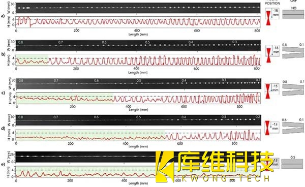 如圖所示,使用輪廓儀獲取的焊接底部的虛擬圖像,以及沿焊接底部軸線的線輪廓。這些圖像和輪廓顯示了焊接底部的形態,包括是否存在駝峰,以及焊接過程中焊縫底部的寬度變化。